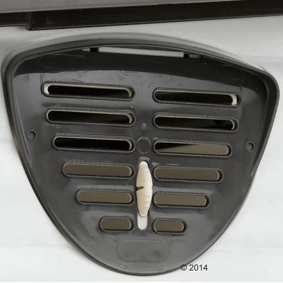 The ventilation slits in huge back of the kennel can be adjusted using a lever for optimal air circulation, whatever the weather. The open entrance is reinforced with an aluminium frame to protect against sharp teeth, and gives the kennel added stability.