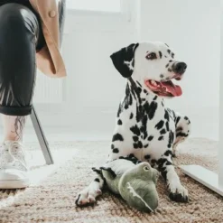 Your dog won’t be able to contain its excitement when it meets this giant snake toy. This funny toy has been designed to look like a real snake, with yellow eyes and green and black patterned body, but with added squeakers in the head and tail to make it even more fun for your dog to play with, even when he’s alone.