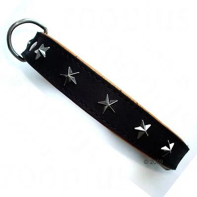 Stylish, premium quality dog collar made from soft leather with star decoration and beige leather lining.