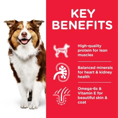 High-quality dry food for senior medium breed dogs, made with tasty chicken and a balanced mineral content combined with vitamin E and omega-6 fatty acids to support skin and coat health.