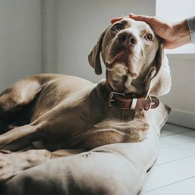 Large, comfortable dog cushion with a durable yet smooth cover that can be easily removed for washing, in an elegant design with softly padded border for your dog to lay its head.