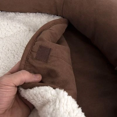 The soft and cuddly cover of the Oval Memory Foam Dog Bed is completely removable from the visco-elastic mattress and can be hygienically cleaned in the washing machine. The easy-care blanket, with warming sheepskin on one side, fastens easily to the bed with Velcro and can be quickly cleaned when needed. The thickness of the mattress allows for a raised entry that is particularly suitable for older dogs.