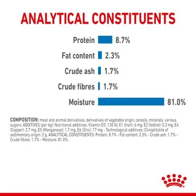 In addition to this Royal Canin Light Weight Care Mousse wet dog food, the Light Weight Care Nutrition range is also available in a crunchy dry food. Both varieties are suitable as a complete food or can be combined. For example, this wet food can be used as a tasty topping for the kibble.