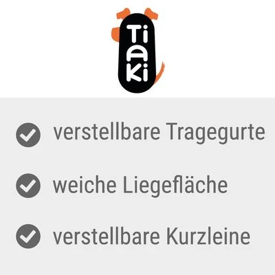 The transport bag for dogs is characterised by its elegant design and the appealing material mix of tweed and plush. A removable cuddly cushion contributes to even more comfort. The fabric is windproof and thus keeps unpleasant draughts away from your darling. You can adjust the length of the carrying straps of the TIAKI Deluxe shoulder bag Milli. A practical inner compartment offers space for small items. As a useful extra, there is a short leash with carabiner so that your four-legged friend cannot jump out unintentionally.