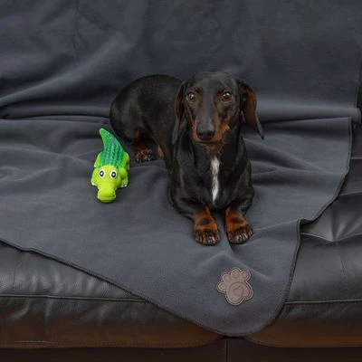 Very useful dog blanket in a beautiful design, with soft polar fleece surface, protects upholstered furniture and other surfaces, insulates well, waterproof and machine washable, colour: grey / black