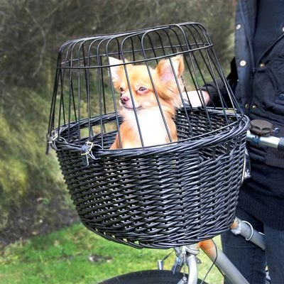 Little dogs often have a problem keeping up with someone on a bike, so if you are on a bike tour with your dog, you might have to opt for a shorter route. The Trixie Bicycle Basket in elegant black wicker is a great way to transport a smaller dog on your bicycle. Your pet will love coming along with you and you won’t have to worry whether it will be able to keep up on longer journeys.